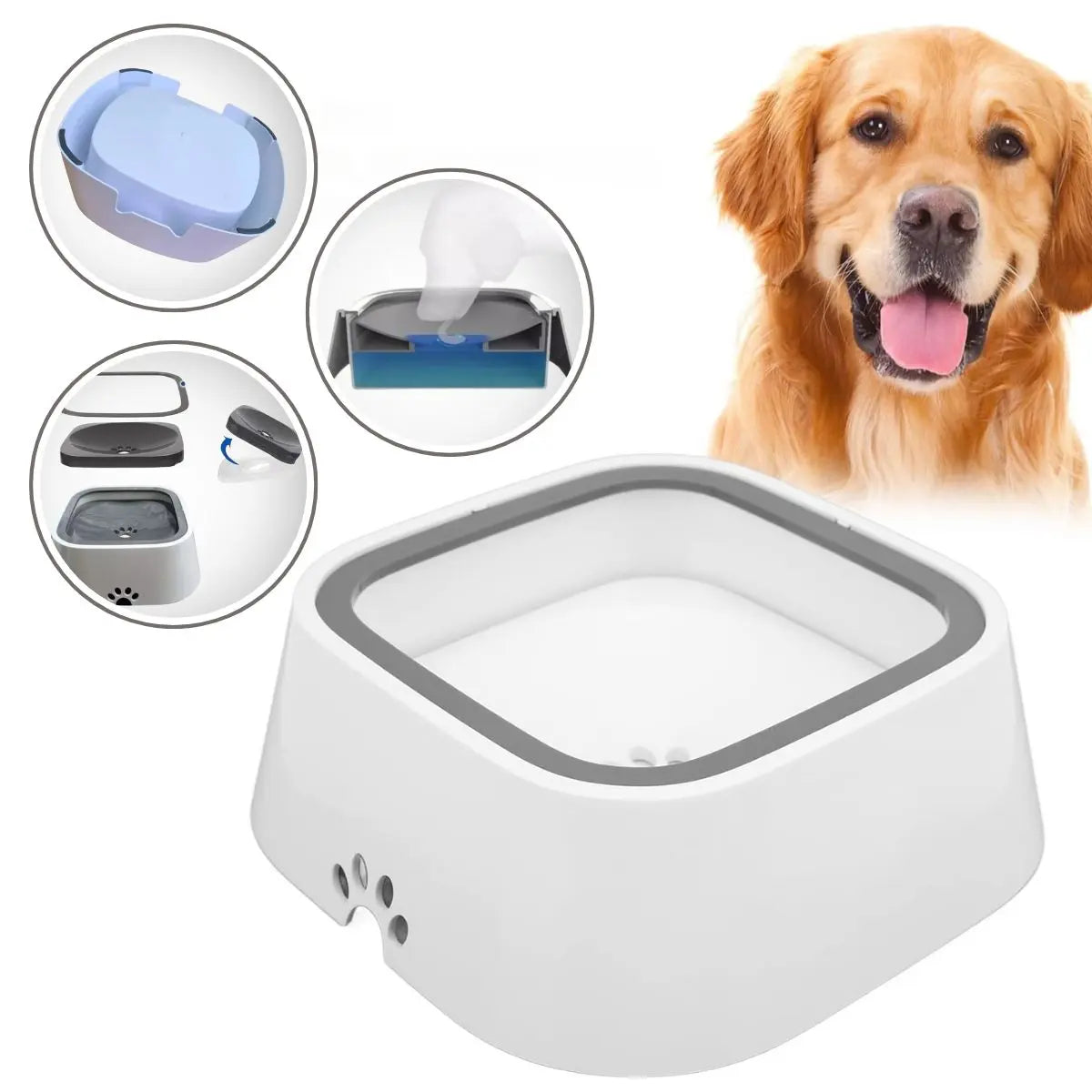 Su bandeja flotante con diseño antiderrame regula la cantidad de agua, evitando que el líquido se desborde cuando tu mascota bebe.